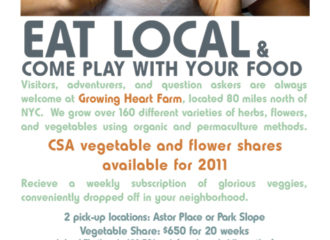 Position: Farmer Seeking a farmer to operate a 1+ acre mixed vegetable market garden on 41 acre farm property in Wingdale, NY – 80 miles north of NYC and 1 mile from a metro north station. Housing is provided. In 2010 we completed our first year operating a CSA and raising lambs for meat. In […]