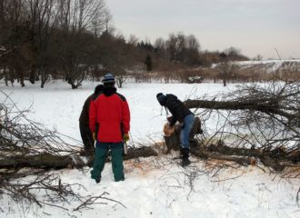 Today we had permaculture educator and designer Andrew Faust out to help us “prune” some trees. We had a couple of black-rot infected, non-producing apple trees in the orchard that we are hoping will coppice. We basically cut them to stumps, and the hope is that in the spring a healthy new shoot will come […]