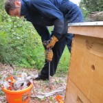 Hurricane Irene is on the way! While I’m hoping it turns out to be nothing, we’ve still done all we can to minimize possible damage. We took the cover off the greenhouse (don’t need the greenhouse taking flight!), harvested as much as we can (no harvesting is going to happen tomorrow), stowed away empty 600-gallon water tanks (would be funny rolling down the street, but not safe), compression strapped/staked down the bee hives, took some “before” photos of the tall plants like the tomatoes and sunflowers… not much to be done besides that.